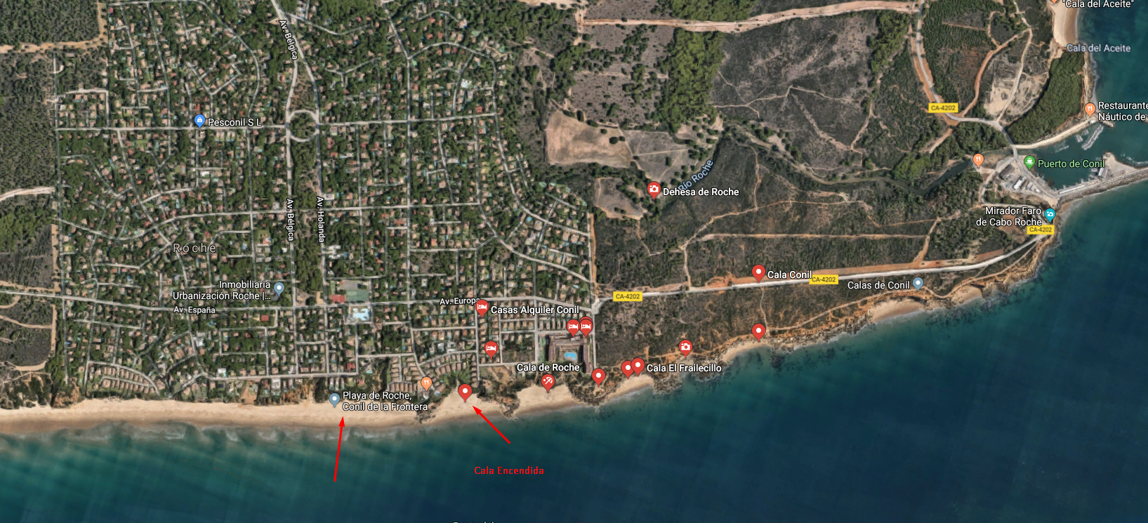 Esta playa que recorre toda la urbanización de Roche, a excepción de las calas, es una magnífica playa de más de 2 km de largo que comienza tras dejar atrás cala encendida. Dispone de bandera azul que certifica su gran calidad aunque no dispone de equipamientos y servicios es la playa a la que suelen irnos residentes o veraneantes de la urbanización de Roche y es la última de Conil de la Frontera hacia el norte.